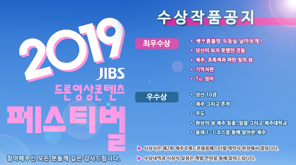 2019 JIBS 드론영상콘텐츠 페스티벌 수상작품 공지